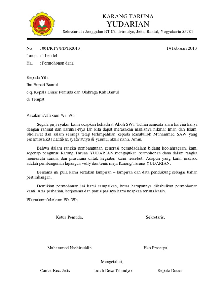 10 Contoh Surat Permohonan Bantuan Dana Izin Kerjasama Yang
