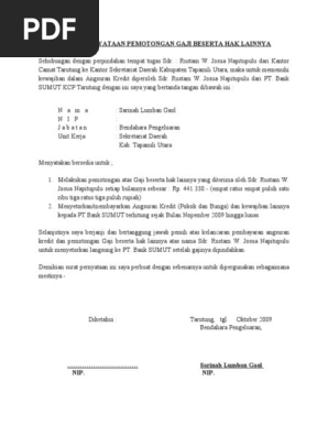 Surat Pernyataan Pemotongan Gaji Beserta Hak Lainnya1