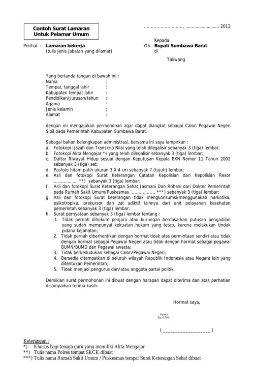 Contoh Surat Lamaran Cpns Kabupaten Dinas Komunikasi Dan
