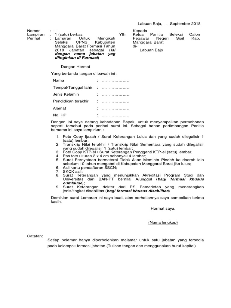 Contoh Surat Lamaran Cpns 2018 Dan Cara Daftarnya