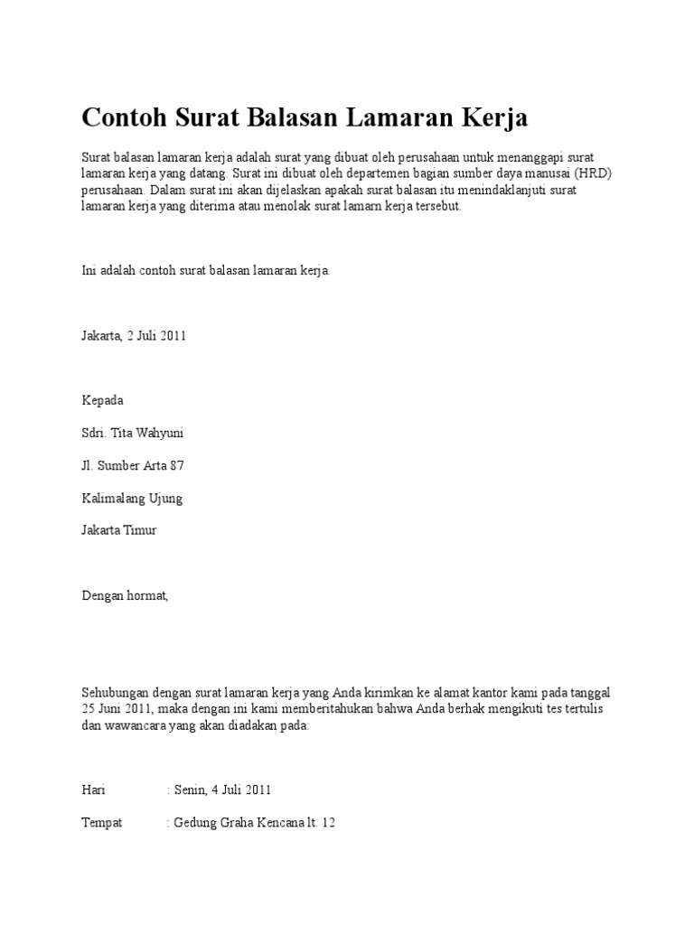 Contoh Surat Balasan Lamaran Kerja Docx