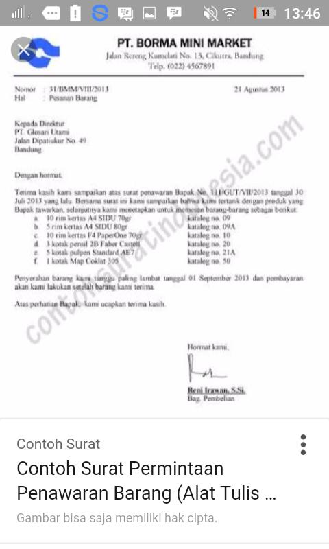 Contoh Surat Permintaan Penawaran Barang Surat Tulisan Periklanan