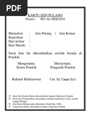 Contoh Isi Surat Izin Pulang Santren Pesantren Mr Fah Blog