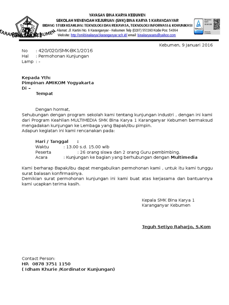 Contoh Surat Kunjungan Ke Media Massa
