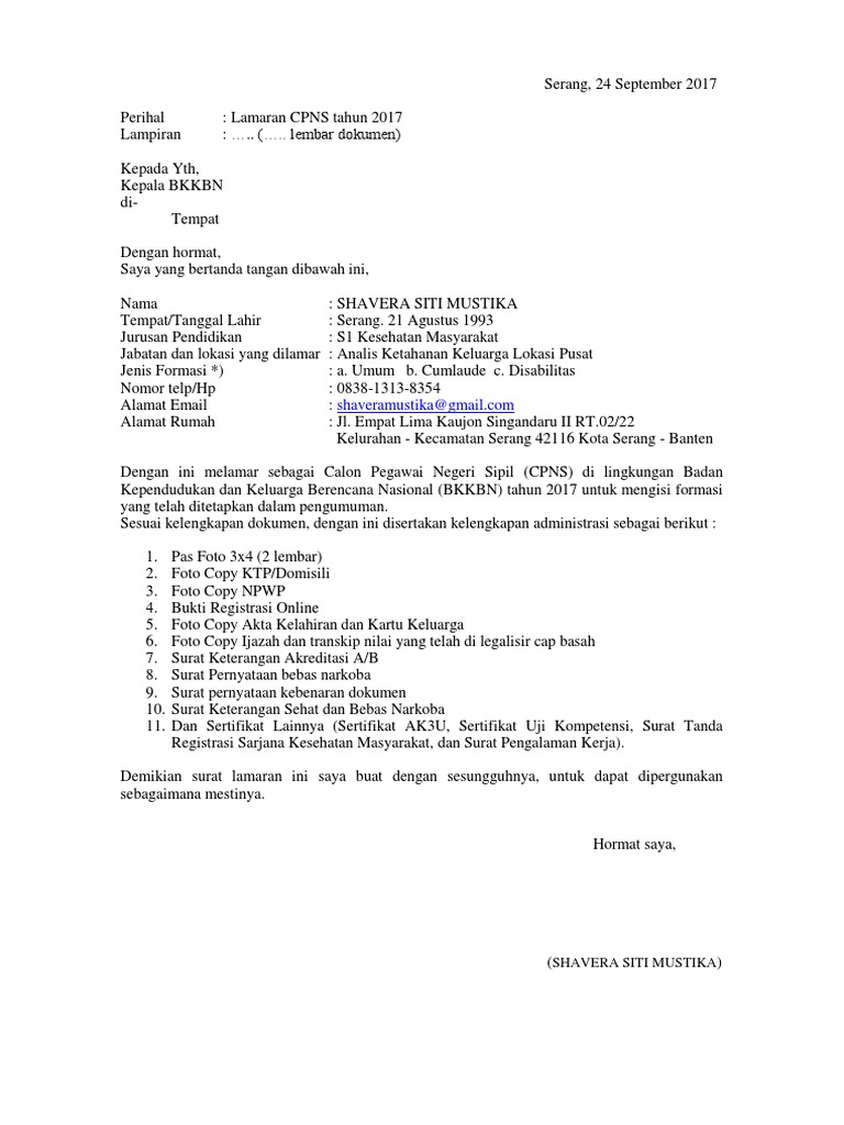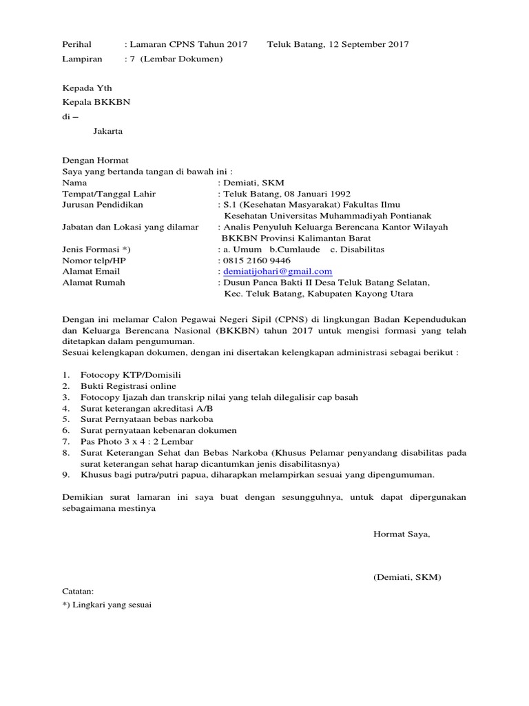 Contoh Format Surat Lamaran Dan Surat Pernyataan Untuk Daftar Cpns