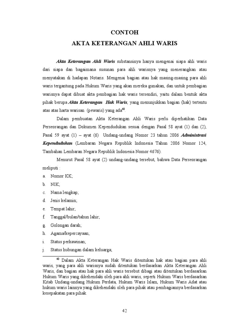 Contoh Surat Ahli Waris Dari Notaris
