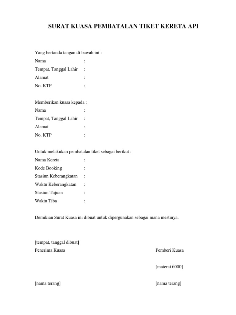 Contoh Surat Kuasa Refund Tiket