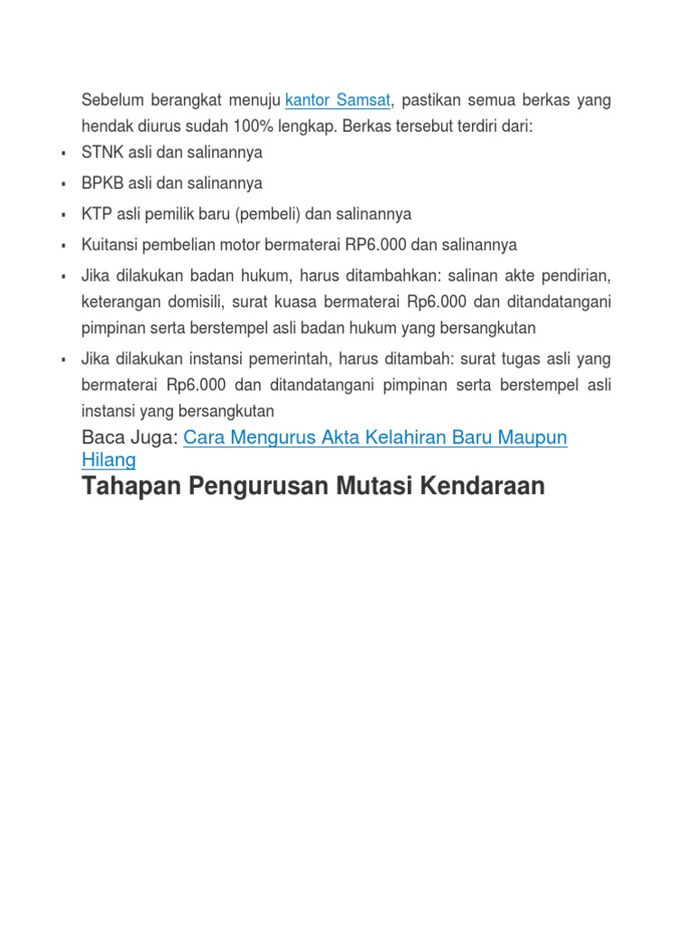 Nanti kita akan di kasih surat jalan sementara yang masa berlakunya kurang lebih 5 minggu. Pastikan semua berkas lengkap. Untuk memudahkan anda pelajari cara proses dan biaya mutasi kendaraan bermotor tanpa calo berikut ini.